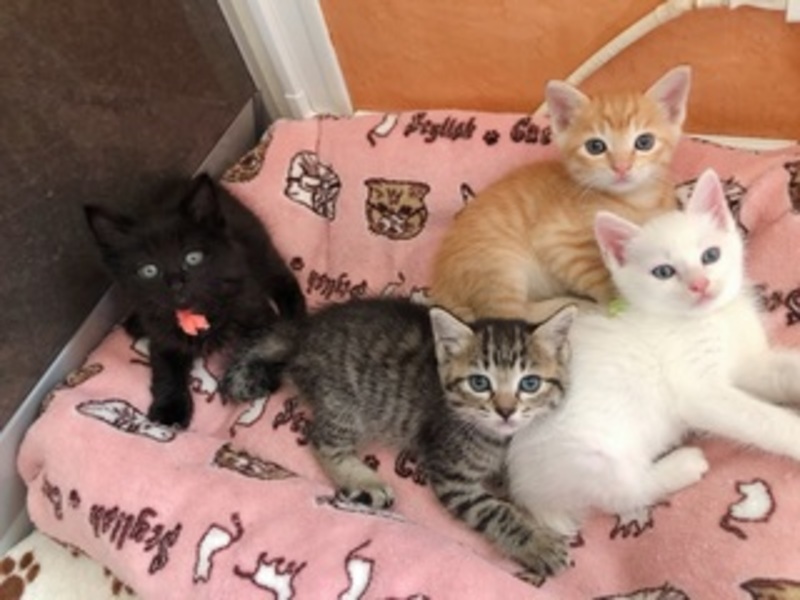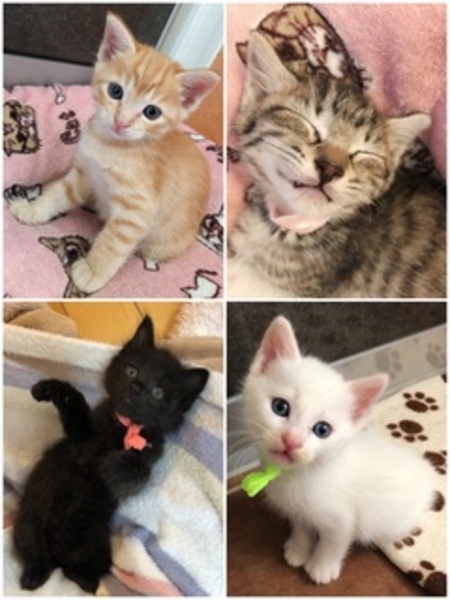 | 特徴(性格など) | 生後1ヶ月の4匹兄妹です。キジと黒は女の子、茶トラと白は男の子です。 ご飯も沢山食べて元気いっぱいです。 我が家の成猫にも遊んで〜とちょっかいを出してとてもかわいい子達です。 |