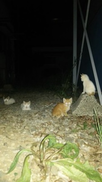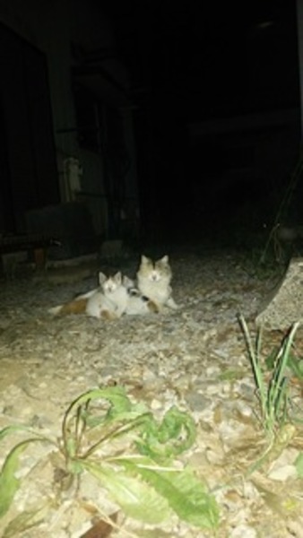 | その他(譲渡条件など) | 通勤中に野良猫ちゃんがいて子猫を4匹産みました 一匹は保護し里親さんが見つかり飼って頂けました あと三匹と出来れば母猫もお願い出来ないかと 母猫は推定2歳半です この子が子猫の時から見ています 住かにしている所がカラスの寝床の林の前なので、茶トラの子はカラスにつつかれてしまったようで少しケガをしているみたい、白に茶のこはびっこをひいてるみたいです 我が家には猟犬がおり、猫を見つけたら追い掛け回す始末でとても仲良くは暮らせません… もし里親さんがいらしたら去勢手術とケガの治療はこちらでやります 近所の方が近々何処かに連絡して始末してもらう!と言っていたのでその前に何とかしてあげたいのです |