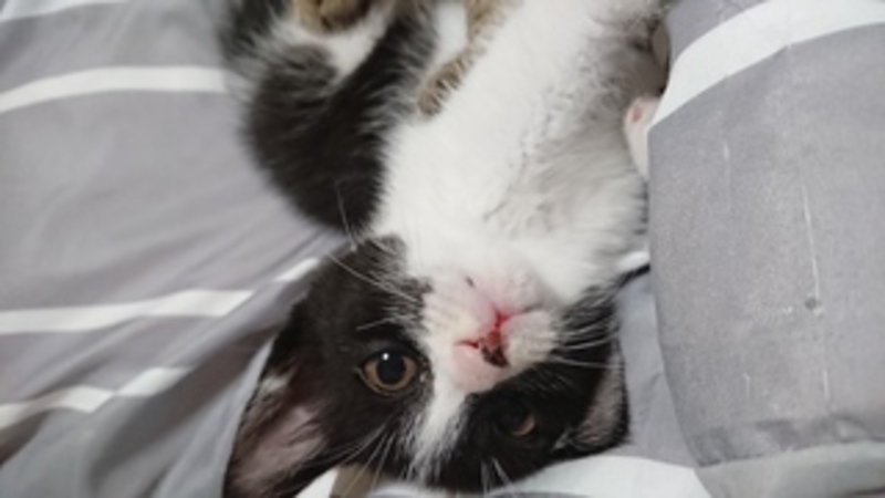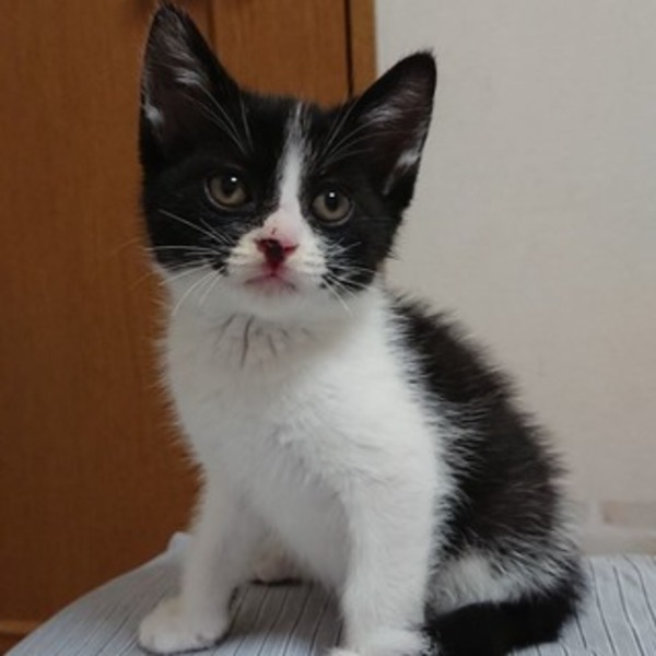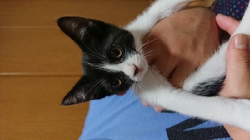 | 特徴(性格など) | 白黒の八割れで尻尾は長いです。 仔猫なのでおもちゃで遊ぶのも他の保護猫達とも良く遊びますがどちらかというとおっとりしています。 人馴れもしていて我が家の犬猫とも問題なく過ごせています。 ワクチン1回目済み ウイルス検査 エイズ白血病共に陰性 ブロードライン済み 検便済み |