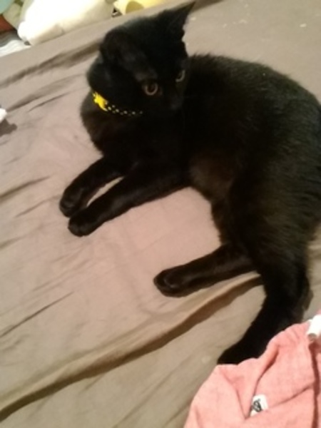 | 特徴(性格など) | 名前は「にゃんまる」と言います。毛色は黒でまゆげの部分が白いです。 少しビビりですが、飼い主に甘えて遊びたがります。去勢手術済みです。 |