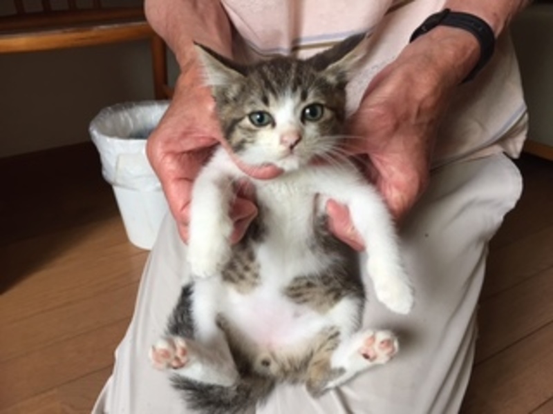 | 里親募集する理由 | 家の近所で、外ネコお母さんから生まれたネコちゃんです。よく人に近づいてきていたので、このまま野良になるのがしのびなく、保護して里親探しをすることにしました。 | ||