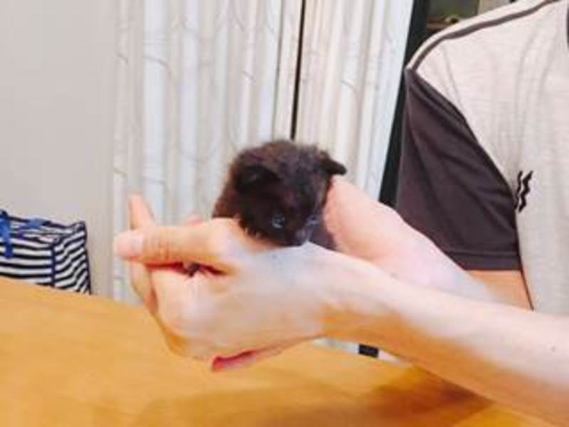 | 特徴(性格など) | おとなしく人馴れしています。 まだ獣医のチェックは受けていませんが、すくすく元気に育っています。 体重は200gを超えました。離乳食を始めています。 |