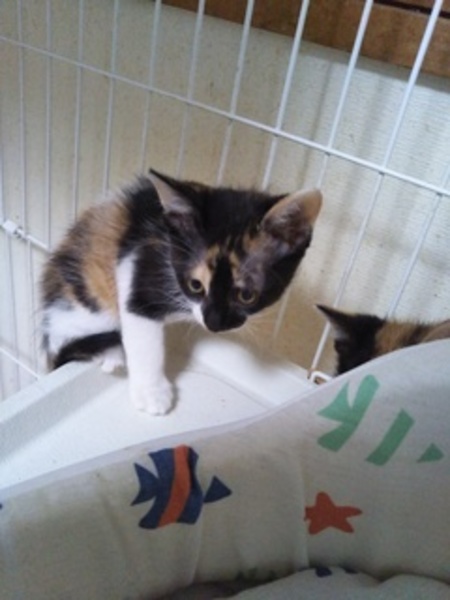 | 特徴(性格など) | 最近珍しい和風の三毛ちゃんです。テレビのアンケートで「飼いたい猫」1位が三毛だそうです。 すごくフレンドリーで、元気に走り回っています。 エイズ白血病検査陰性、ノミダニ駆除・フィラリア予防のためレボリューション投与 検便済 トイレしつけ済み 近々ワクチン接種予定 |