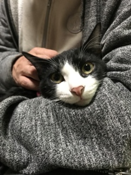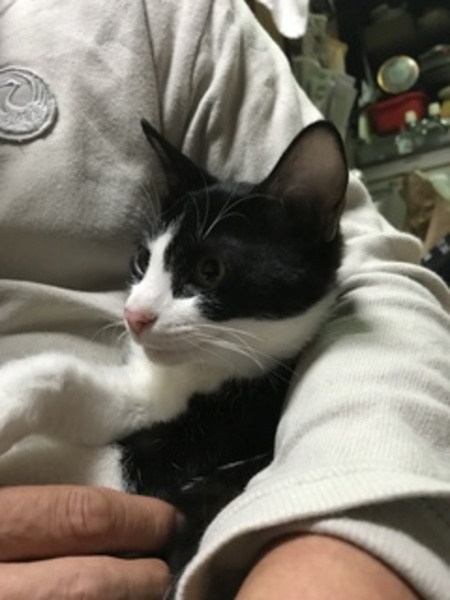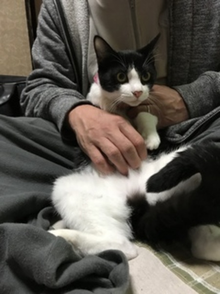 | 特徴(性格など) | 仮名:チドリ 色柄:白黒ハチワレ 尻尾:長いく真っ直ぐ 性格:甘えん坊、遊ぶの大好き。食欲旺盛。 どんな猫にも、動じません。 飼い猫の妹ととして迎えられたらいかがでしょうか? |