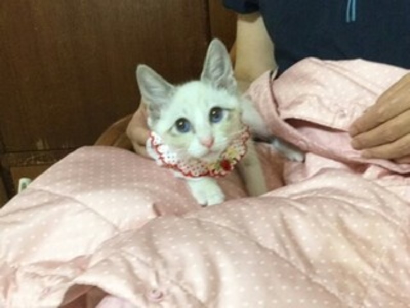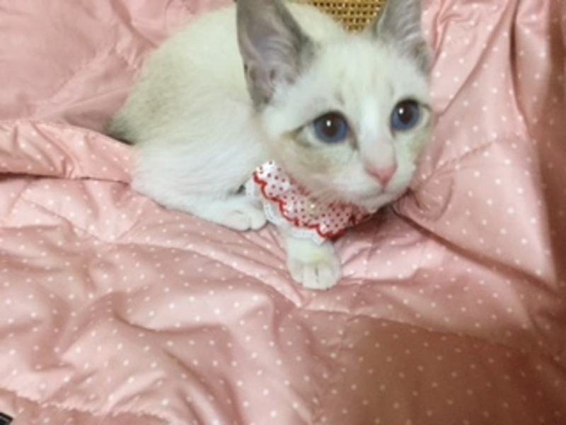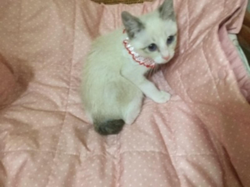 | 特徴(性格など) | シャム系の生後2ヶ月くらいの可愛い女の子 目がブルーでとってキュ—ト尾はバンビちゃんみたいで 本当に可愛い美人猫ちゃんです。 性格はかなり穏やかな子で人にも慣れて抱っこも出来ます。 |