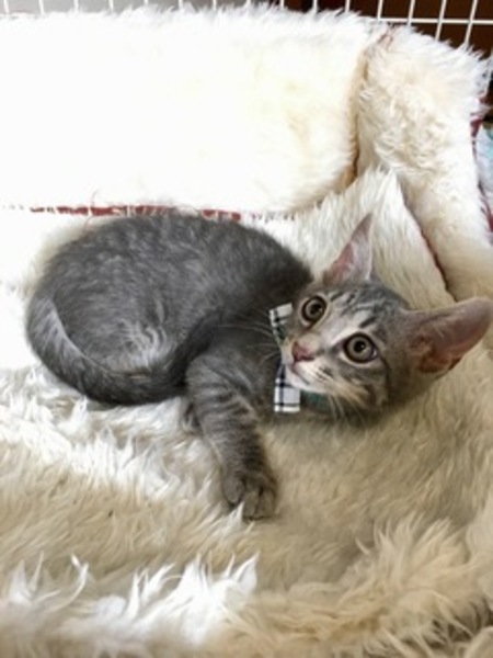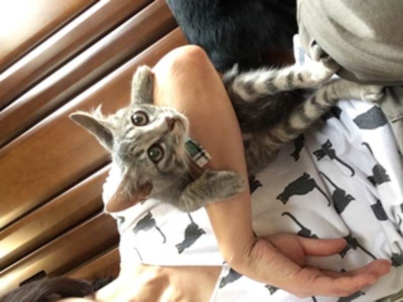 | 特徴(性格など) | あんよが短くてラブリーな仲良し3きょうだいです。 オス。珍しいグレーのキジ。尾長。小ぶりです。攻撃性無くとにかくお利口さん |