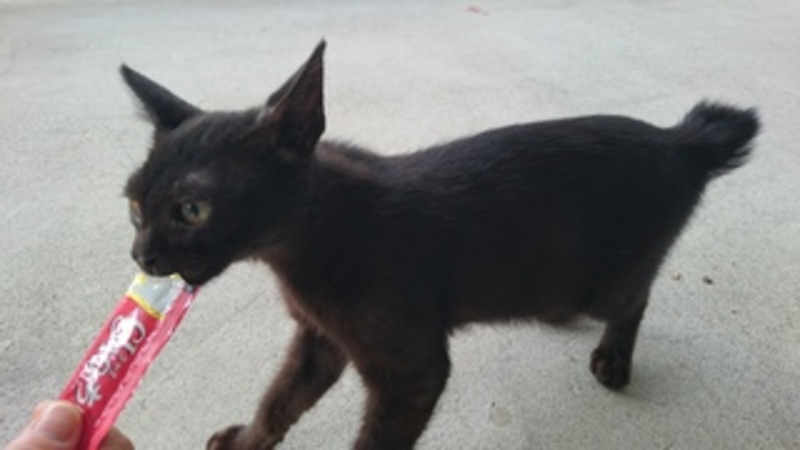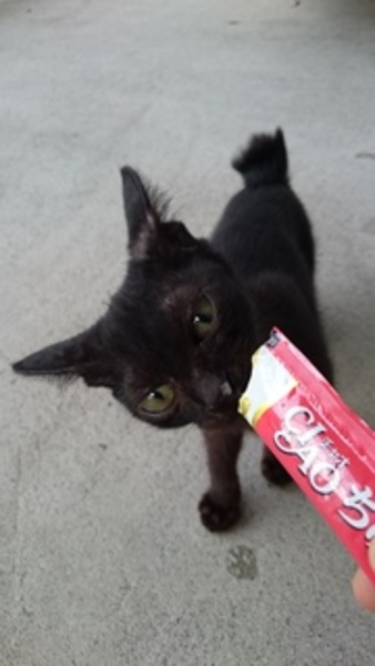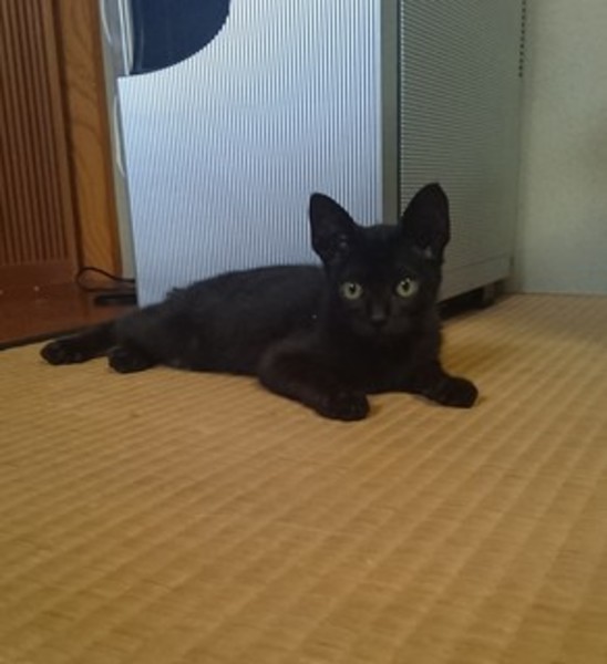 | 特徴(性格など) | 黒猫ですが、少し茶色も入っていて 脇や手足に、薄っすら縞模様が見えます。 お腹と胸に少し、白い毛があります。 顔が小さく、手足が長く 尻尾は短いです。 人を恐れず、近所の野良猫にもすり寄っていきます。 怒ったり、威嚇したりしない子です。 |