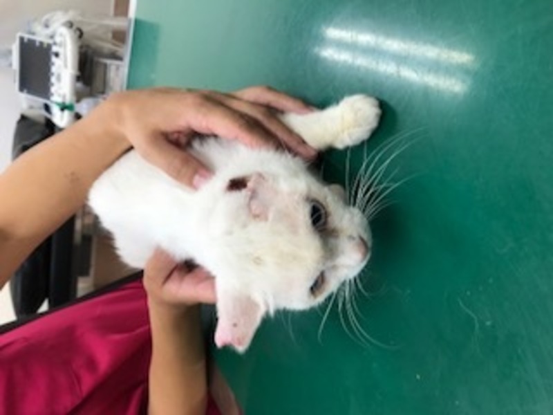 | 特徴(性格など) | 年齢はわからないが、病院でまだ若そうだと言われました。毛色は白でおとなしい性格です。 | ||