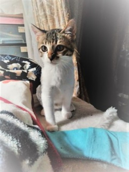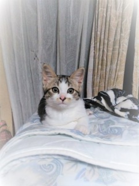 | 里親募集する理由 | 仕事帰り暗い道を餌を探してうろうろしている母子連れの猫を見つけ、保護しました。 母ネコは、避妊手術をし放しました。仔猫2匹は1週間ほど病院で預かってもらい現在は我が家で一時預かりをしています。 3匹目の子は霞が城公園を散歩中見つけました。風邪を引き弱っていたので連れてきました。風邪治療も済み現在は完治しています。 |