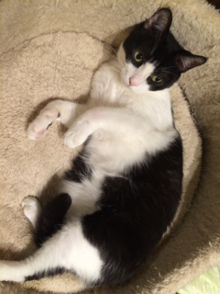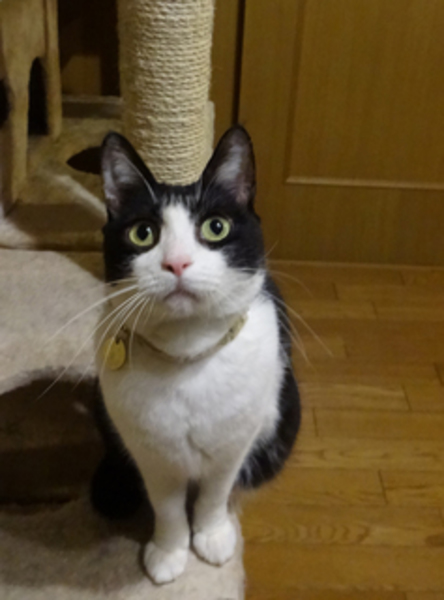 | 特徴(性格など) | 八割れ(ハチワレ、はちわれ)白黒(牛柄)ブチ猫の女の子 人懐こく膝の上に乗ります。 性格はマイペースで他の猫にいじめられたり地震がきても物怖じせずあまり気にせずの大らかな性格です。おもちゃでよく遊びます。 歯肉炎があったので悪かった部分のみ抜歯手術をしましたが、ドライフードなども問題なく食べられます。 ・ノミ・ダニ寄生虫等検査済み ・猫エイズ・白血病検査済み陰性(保護三ヵ月後再検査で完全陰性) ・血液検査済み(腎臓肝臓問題なし) ・三種混合ワクチン接種済み ・不妊手術済み ・トイレ躾済み |