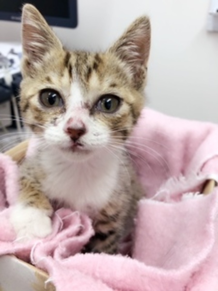 | 特徴(性格など) | 毛色はキジ白で、他の猫とも仲良くできます。 仔猫らしくとてもわんぱくです。 |