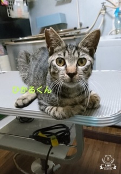 | 特徴(性格など) | 仮名「ひかるくん」ワクチン1回済み、ブロードライン済み、ウイルス検査白血病、エイズ共に陰性 キジの男の子。去勢手術済みです。 とにかく甘えん坊でかまってもらうのが大好き! なでなで大好きで初対面の人でもお構いなし 人間が大好きなのでお留守番が少ないご家庭を希望します。 |