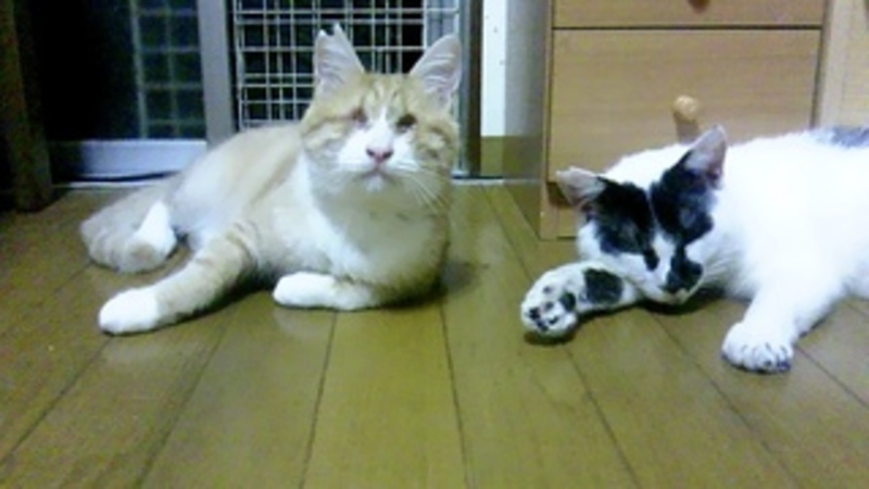 | 特徴(性格など) | 茶白 全盲ですが、生活に支障はありません。 「おいらチャシロ。 両目失くしちゃったんだけど、ご覧の通り、まったり生活をエンジョイしてるよ。 いま居る所は「多頭飼い状態」らしいんだけど、誰ともぶつからず、仲良くしてるんだ。 近頃ヒトとの共生も悪くないなって、思うようになって来たんだけど、 いま、”拾う神”って人を待ってるんだって。 あなたがそうなの?」 右のパンダ君も里親募集中 (トラ子さんは、餌やり老人引越の為、必死の便乗広報! 仰向けごろんデビューしました〜!!! 急いでいます!!) |