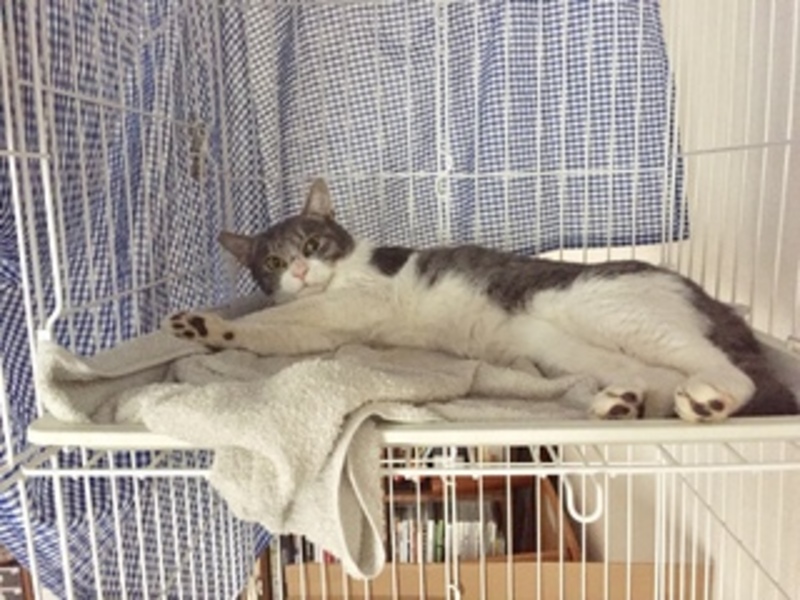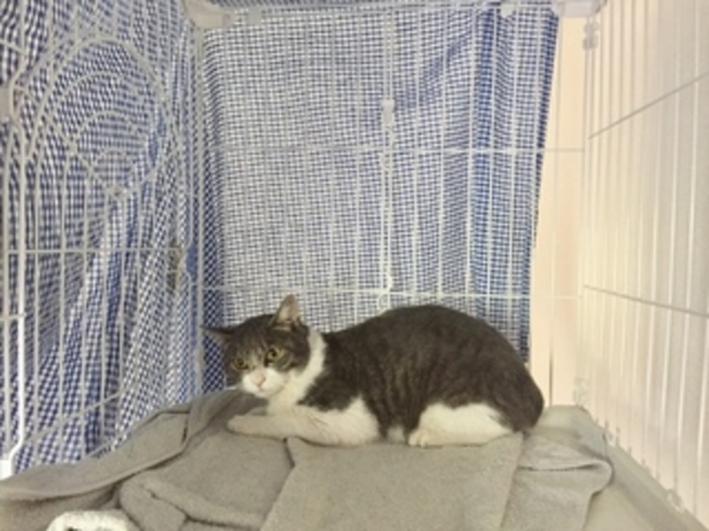 | 特徴(性格など) | 毛色はグレーで、お腹、手足、お口周辺は 白色です。チャームポイントはまん丸お目目です。人間に慣れていないので威嚇したりしますが基本的には大人しく、ごはんとトイレはちゃんとできます。 ワクチン接種済み。白血病、猫エイズ陰性。去勢済み。 |