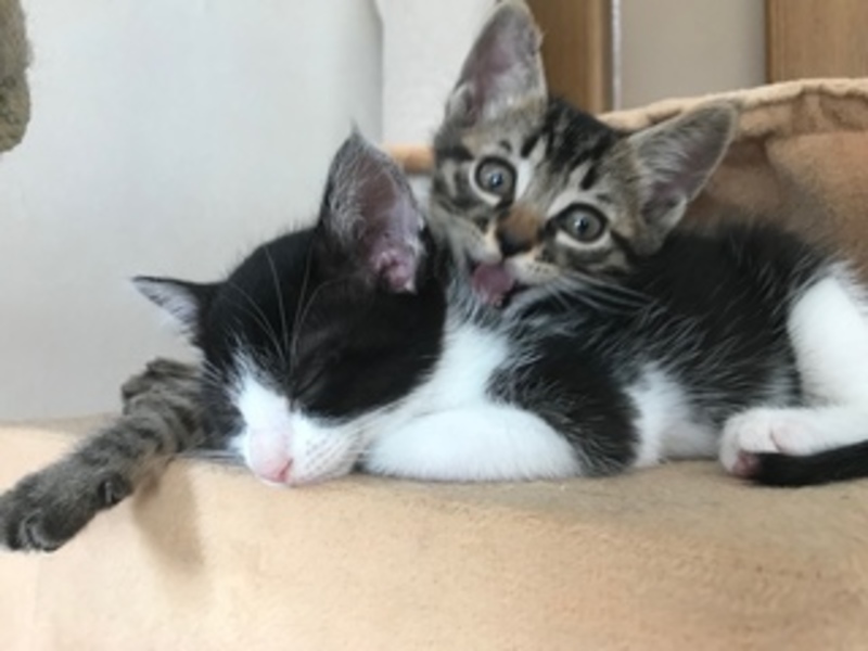 | 特徴(性格など) | キジ・・オス 名前 トラ 白黒・・メス 名前 ネネ 超甘えん坊で 抱っこ大好き 仲良し兄妹です 人間大好きな可愛い子猫です |