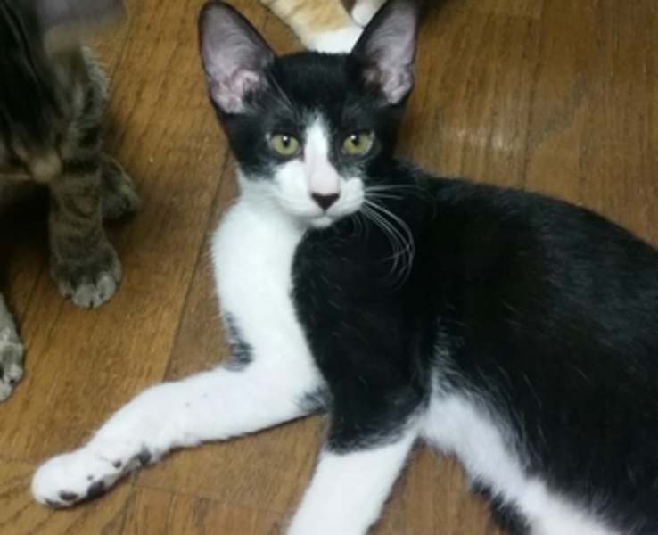 | 特徴(性格など) | かわいらしいハチワレの女の子です。遊ぶことが大好きで、子供達にも怖がらず遊んでいます。 | ||