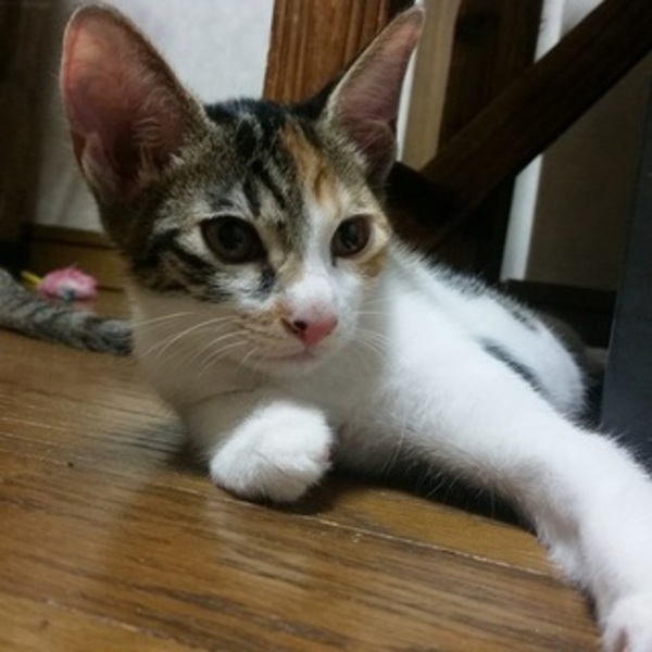 | 特徴(性格など) | シマ模様の三毛ちゃん♡ とってもべっぴんな女の子です。 好奇心旺盛で子供達にも怖がらず一緒によく遊びます。切れ長の目で、見ればみるほどべっぴんさんです。 |