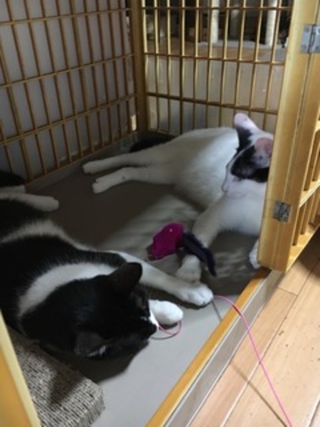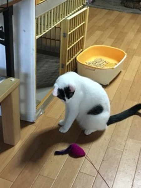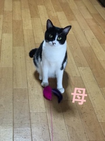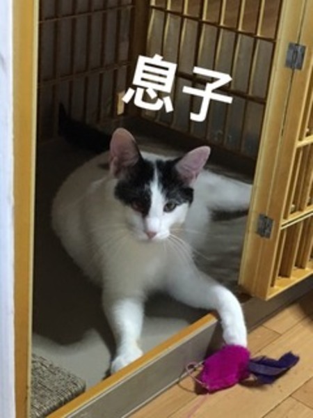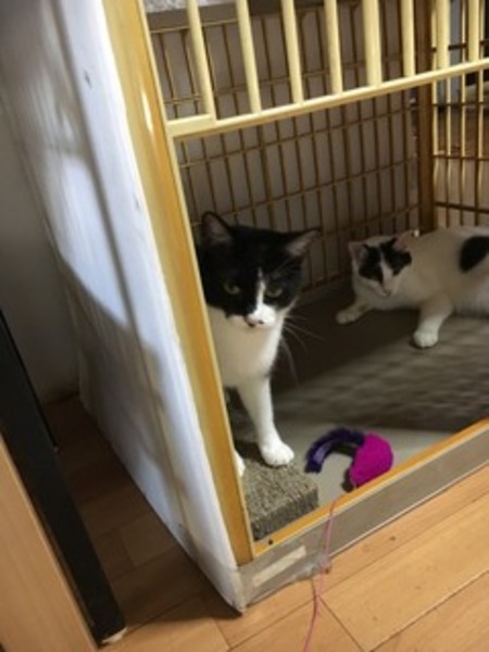 | 特徴(性格など) | 黒白の母猫は2才、白黒の息子猫は1才。人に慣れていませんが、性格は穏やかです。猫じゃらしで遊ぶと余念無く遊びます。不妊手術済み。トイレしつけ済み。 | ||