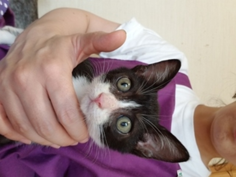 | 特徴(性格など) | ハチワレの男の子、社交性抜群、人見知りしません。甘えん坊で遊ぶことが大好きな愛嬌のある子です。 | ||