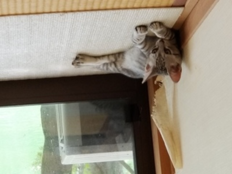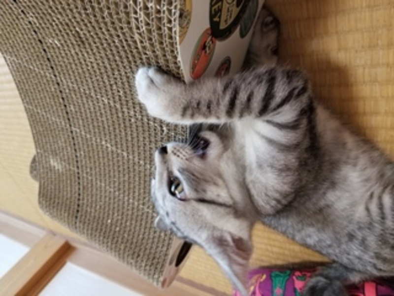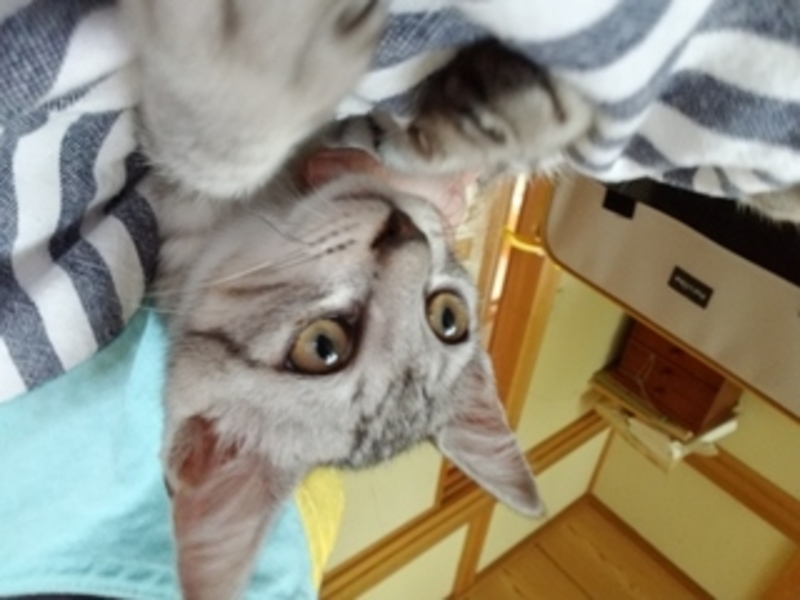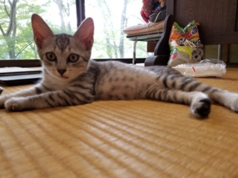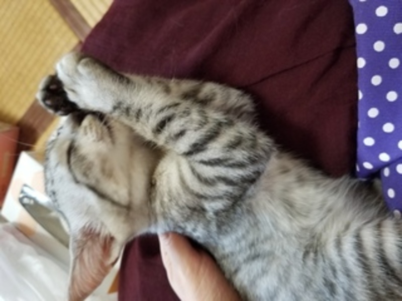 | 特徴(性格など) | サバトラ柄のきれいな男の子です。一緒に保護した兄妹の面倒を見たり、優しくて賢いです。 人が大好きで、見るとついてきて甘えます。膝に乗るのが大好きです。猫白血病、エイズ共に陰性、トイレのしつけ済み。 |