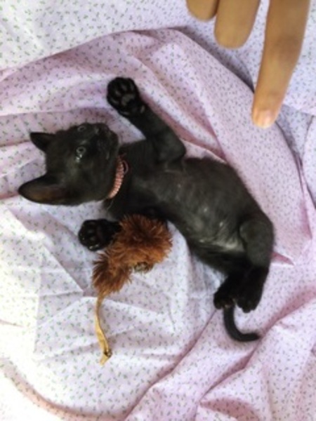 | 特徴(性格など) | 名前;リオくん。男の子。兄妹の中で一番の甘えん坊です。愛情表現が愛らしです。検便済・ブロードライン滴下済・三種ワクチン接種済・トイレ躾済・フードを食べています。優しい色合いの黒猫です。授乳で育てたので人馴れ抜群です | ||