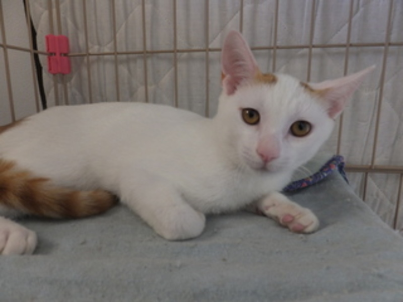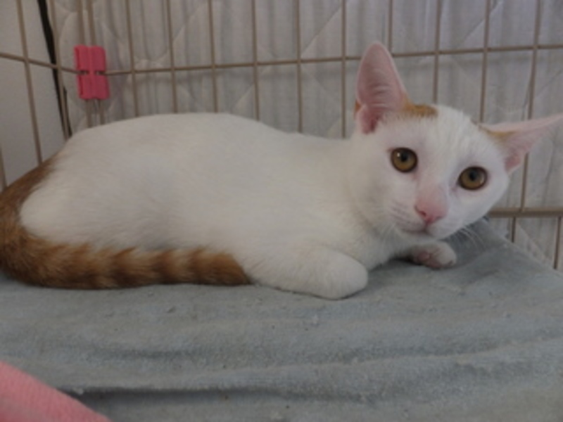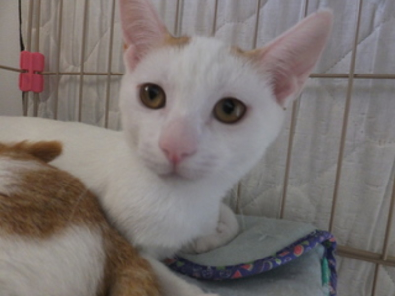 | 特徴(性格など) | とても大人しい男の子です。 困り顔と、耳のつけ根の茶色い毛が チャームポイントです。 ワクチン:1回済、血液検査:陰性、去勢手術:済 |