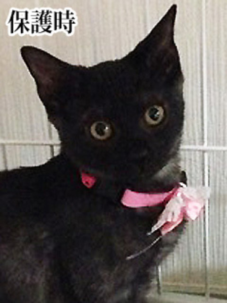 | 特徴(性格など) | 仮名を『りぼん』といいます。 少し臆病なところがあります。 現在は預かりボランティアさんのおうちで人馴れ訓練中です。 撫でたり触ることはできますが、少し臆病なので、 りぼんのペースで見守っていただけます里親様を募集いたします。 被毛の色は真っ黒ではなく、ブラックスモークといった感じです。 【医療処置情報】これから実施のも含まれます *健康チェック *3種混合ワクチン接種 *ウイルス検査実施(FIV.FeLV共に陰性) *検便実施 *駆虫薬投与(レボリューション、ドロンタール) *マイクロチップ装着 *不妊・去勢手術 |