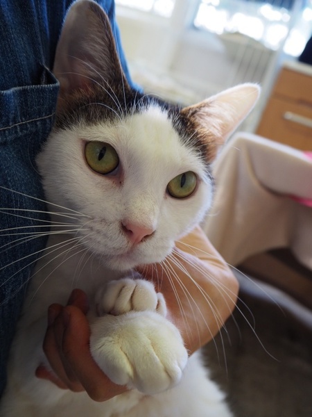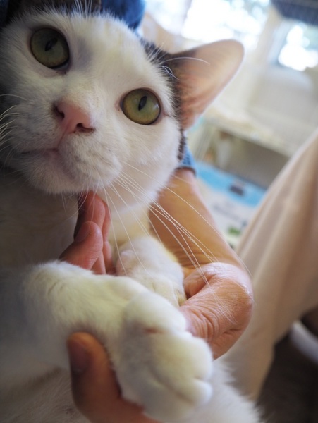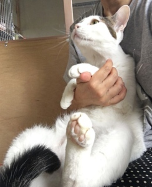 | 特徴(性格など) | 抱っこ大好きで愛嬌たっぷりの「かつら」くん♡ とにかく人の傍にいるのが大好き♡ 性格も見た目もイケニャン♡ 腰にハートマークの模様♪を持っていて、みんなを幸せにしてくれそぉ♪ 欲しいものがある時、人の前にちょこんと座り、静かに穏やかにおねだり♪ 誰とでも仲良く過ごせる、甘えん坊でステキな男前です。 エイズ陽性ですが、筋肉質の体躯でエイズ発症の様子は一切ありません。 現在、ドライフードを置き餌として、栄養補給のため、缶詰パウチを一日1回与えています。 |