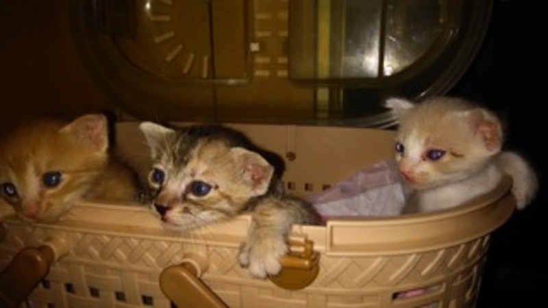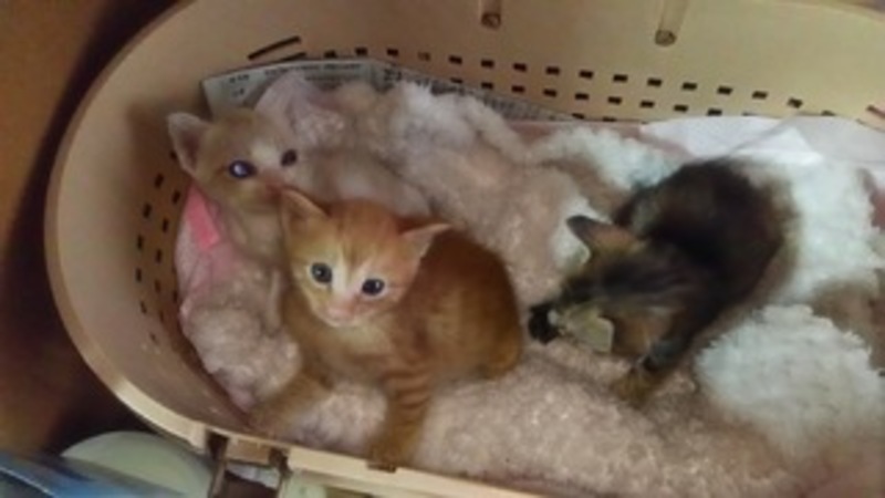 | 特徴(性格など) | ★茶トラの男の子350㌘、 ★白×クリームの女の子305㌘ ★黒×茶の女の子320㌘ 三ぴき授乳中、ミルク |