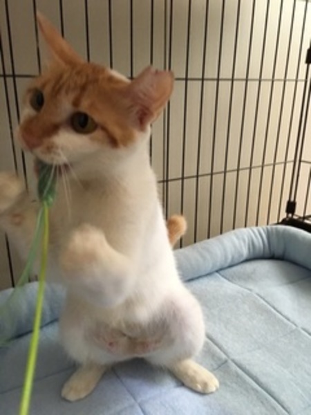 | 特徴(性格など) | ・2016年7月生まれ ・毛色 茶白 ・尻尾 長く真っ直ぐ 抱っこ、一緒に遊ぶのが大好きで、人馴れ抜群です |