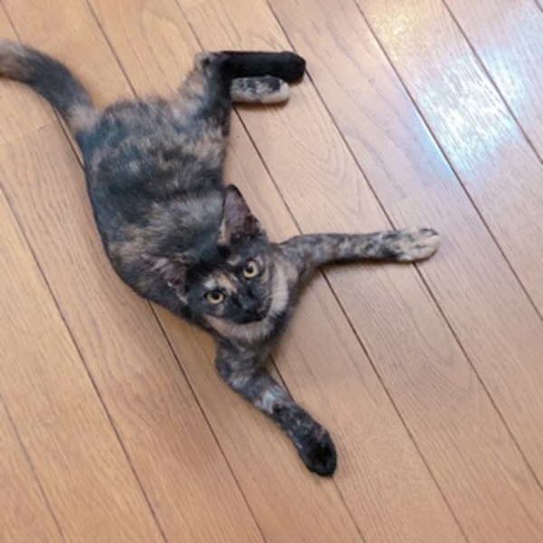 | 特徴(性格など) | 【名前】くるみちゃん 【年齢】約2ケ月 【毛並】茶色と黒のサビ柄 長いしっぽ 首にスカーフまいてます。 元気いっぱいのくるみちゃん。遊ぶの大好き。 保護して2日で馴れました。最初からシャーもなかった子です。 人馴れ完璧、抱っこされるとゴロゴロ言ってます。 家に一緒にいる保護猫たちと仲良しで毎日元気に遊んでいます。 1.5kgと小柄ですが至って健康です。 健康状態 良好 トイレ躾け済 ノミ・ダニ・駆虫駆除済 まだ小さいのでお留守番が短い、または先住猫のいるご家庭を希望します。 |