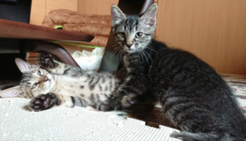 | 里親募集する理由 | 野良猫に無責任に餌を与えて増やしているだけの場所に、猫の赤ちゃんを捨てた人がいます。捨てられた人が保健所に電話すると、保健所は「引き取り日に連れて来てください」と答えただけでした。 子猫達はダンボールに入ったまま外に放置されて、5匹いたうち、ボランティアさんが行ってくれた時には、すでに2匹亡くなっていました。 3匹の内の1匹も弱り切っていましたが、最後にミルクを飲んで、その日のうちに命の灯を落としました。 生命力の強い、晴(ハル)と霧(キリ)だけが生き延びました。 亡くなった3匹の分まで、幸せにしてくれる里親さんを待っています。 |