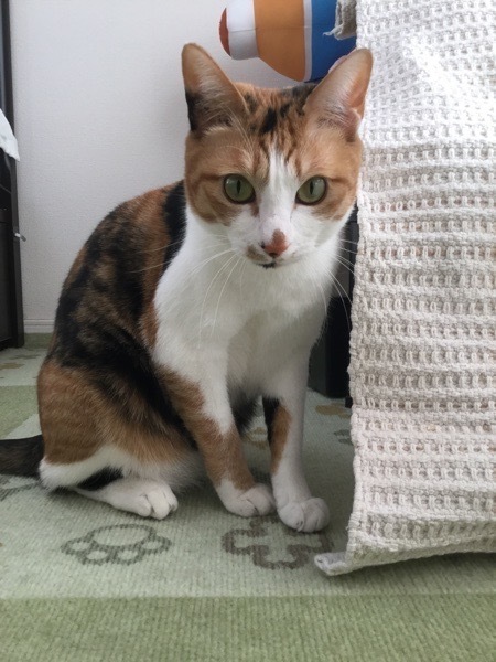 | 特徴(性格など) | ☆☆☆ご希望の方は、以下のアンケートフォームにご記入の上、送信してください☆☆☆ ねこ親希望アンケート→ http://chibawan.net/contactform_cat 【猫No】2703 【愛称】アンズ 【性別】メス 【年齢】推定4才(18/05頃生) 【毛色】三毛 【体重】5kg 【状態】不妊手術済、ワクチン接種済(21/08/28)、血液検査済(エイズ−・白血病−)、マイクロチップ装着済、ノミダニ駆除済、トイレ躾済 【預かり場所】東京都足立区 【日記】https://twitter.com/tanaka_neet Twitter http://instagram.com/tanaka_neet Instagram 【経緯】千葉県動物愛護センターより引き出し 【性格】アンズは名前を呼ぶとお返事をしてくれるおしゃべりなおんなのこです。 オモチャで遊ぶのは大好きですが、常に人と適度な距離を保ち、抱っこが嫌いであまり撫でさせてもくれない...! そんなアンズなので、たまに頭をグリグリ擦りつけて甘えられるとたまらなく可愛いのです♡ また一見気が強そうですが、かなりのビビりで玄関のチャイムが鳴るだけでダッシュで逃げていきます。以前トライアルした先では新しい環境での不安からか初日に粗相をしてしまったこともありました(慣れてきたら治まりました)。環境に慣れるまで少し時間がかかるかもしれませんが、ゆっくりおつきあいしていっていただけたらと思います。 【補足事項】 ・乳飲み子の時に脱肛がありました。現在症状はありませんが、下痢や便秘など起きた場合は気をつけて見てあげてください。 ・ウールサッキングの傾向があるので誤飲防止のためにもオモチャや危ないと思われるものは必ず片付けてください。特にゴムひもは好んで齧る傾向があります。 ・おしっこを真横にする癖があるのでトイレは深めのタイプをお勧めします。 ・運動能力が高いので、脱走防止対策はしっかりとお願いします。 ・また大変申し訳ございませんが、猫の年齢が低いためご高齢の方のみのご家庭の場合、お申し込みをお断わりさせていただく場合がございます。 【その他】愛情いっぱいの終生飼養、ネコに合った生活スタイル、完全室内飼育、定期的なワクチン接種などの健康管理をお約束いただける東京都近郊のご家族で、アンケートを快くお答えいただける方からのお問い合わせをお待ちしております。 |