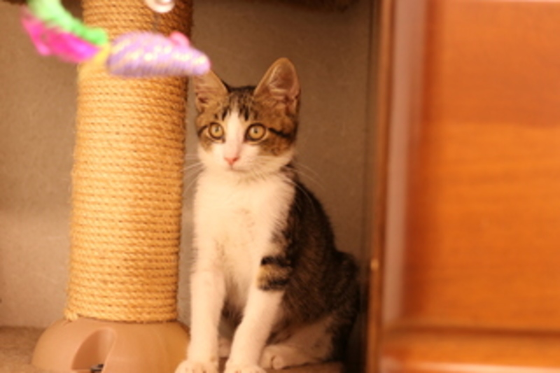 | 特徴(性格など) | ●特徴 ・白キジ柄、しっぽは根元から右に曲がっている短めの尾曲がり猫 ・トイレ、爪とぎは最初からできます。 ・シャンプー、爪切り嫌がりません。 ・人も猫も大好き。 ・上記のことから、元は飼い猫だったことがわかります。 ●性格 元気!無邪気でやんちゃ者。 よく食べよく遊びよく寝て人間(子どもも)も猫も大好きです。 捨てられたトラウマなどもありません。 ケージ内では大人しくしていられます。 ●健康状態 当初は、極度の脱水・栄養失調、下痢・風邪・ノミ・皮膚病などで命の危険もありましたが、保護から1ヶ月たった今(8月16日現在)、立派な体格の健康優良児です。 ・血液検査(猫エイズ・猫白血病)陰性 ・ブロードライン(薬名)でノミダニ、お腹の駆虫済み(検便はしていません) |