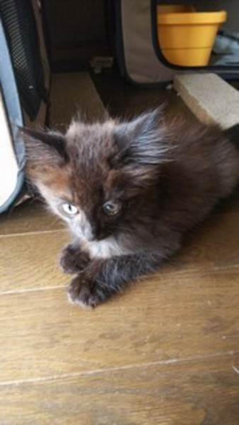 | 里親募集する理由 | 6/14、猫風邪ノミダニでガリガリに痩せて叢に4兄弟でいたのを保護しました。2匹は知り合いなどで里親が決まりました。毎年捨て猫を保護してしまい、すでに成猫5匹います。5月にも1匹離乳期の子を保護し10匹になり、手放すのは断腸の思いですが、多頭飼崩壊しかねないため、里親募集に至りました。 | ||