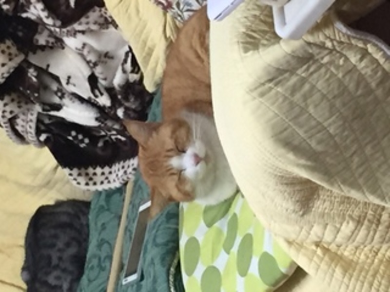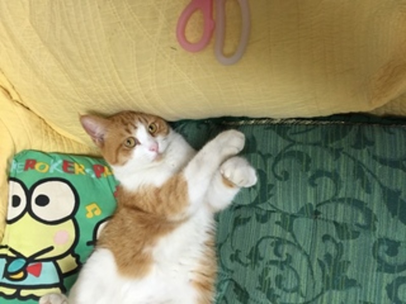 | 特徴(性格など) | 名前はみかんと言います。オレンジと白のmix猫です。よくヤフーモバイルの猫に模様も顔も似てると言われます。 名前を呼んだり、声かけすると返事をしてくれます。人懐こいく、お腹を出してゴロゴロしたり、くっついて寝たりします。 |