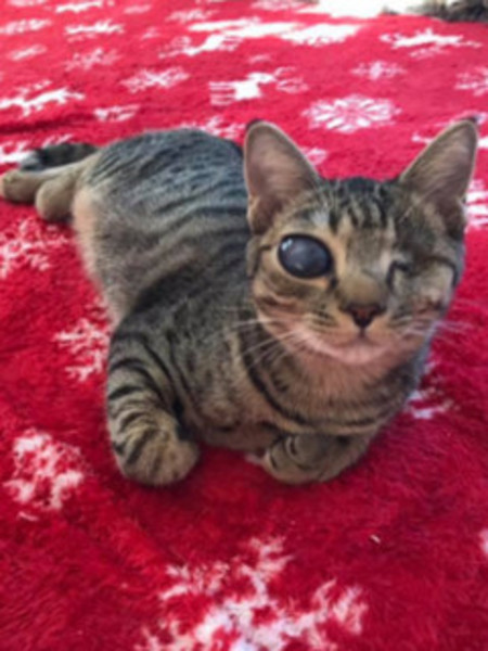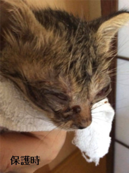 | 特徴(性格など) | 仮名を『シャイン』といいます。 オシキャットブリーダー崩壊現場から保護されました。 保護時は自力で頭が上げられない程衰弱していましたが、みるみる回復し、現在は元気いっぱいです。 酷い結膜炎によりほとんど開いていなかった瞼も毎日の点眼により開きました。 しかし、眼球のダメージは大きく、片方の眼球には穴が空き、 視力も失っていたので左眼球摘出手術をしました。今ではすっかり良くなりました。 もう片方の目はかすかに光を感じる程度のようです。 シャインは、とても人馴れしてしていて、手のかからない大人しい仔です。 明るい性格で目が不自由なことを感じさせず健気で可愛いです。 まだ小さく、安全のため個別ケージで飼育中ですが、多頭飼育の環境に生まれましたので、猫にも慣れています。 隣のケージの仔猫と遊びたそうな仕草もみせます。 話しかけると嬉しそうに話しを聞いています。 シャインのハンディキャップをご理解くださり、愛情をたっぷりかけていただけるお家を希望します。 【医療処置情報】 これから実施のも含まれます *健康チェック *3種混合ワクチン接種 *ウイルス検査(FIV. FeLV共に陰性) *検便 *駆虫薬投与(レボリューション、ドロンタール) *マイクロチップ装着 *不妊・去勢手術 |