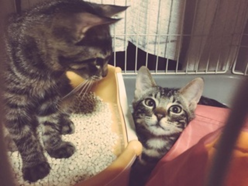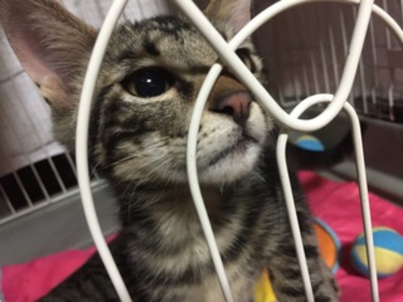 | 特徴(性格など) | ●なまえ:ずんだ(仮) ●体重:2.1キロ ●毛色:キジトラ ●性格:兄弟のお兄ちゃんっぽい、繊細で慎重な性格です。 ●保護当時で3ヶ月半、今は4ヶ月ちょっとです。 保護当時は毎晩のように外に出たいと鳴いていたので(今はすっかり落ち着いて夜も鳴くことはなくなりました)、環境が変わったらしばらくは鳴いてしまうかもしれません。 急に動いたりすると、今でも時々不安でシャーと言ってしまうこともありますが、顔を見ると嬉しくてついゴロゴロ言ってしまうツンデレもかわいいです。 先住猫に対しては一度もシャーやウーは言いませんので、他の猫さんがいても大丈夫だと思います。 ケージのトイレ掃除をすると、上の段から髪の毛をちょいちょいしたり、好奇心旺盛でいたずらっ子の一面も。 まだごはんを食べている時や眠たい時しか、おとなしくナデナデさせてくれませんが、手がでてもチョイチョイ程度で、甘噛みなので痛くはありません。 トイレも初日からバッチリで、一度も失敗していないですし、兄弟仲良くお留守番もしてくれます。 |