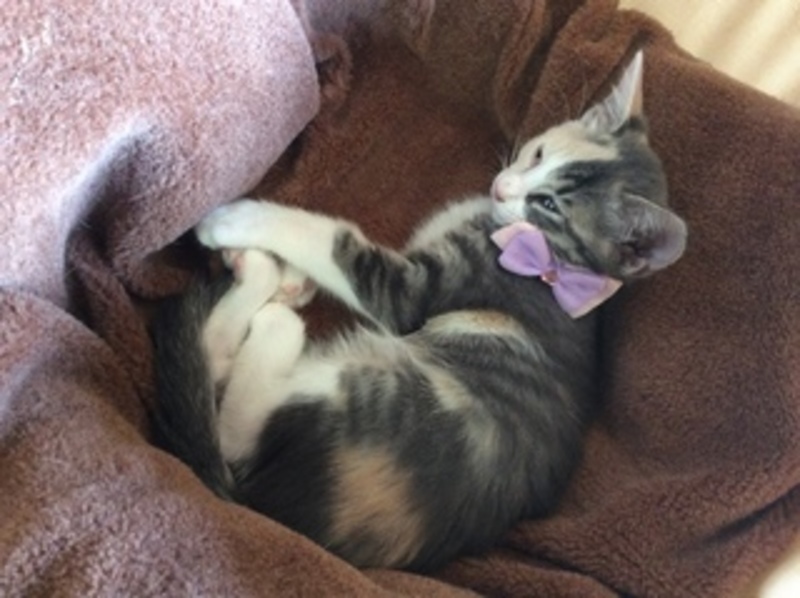| 特徴(性格など) | <<トライアル予定が入ったため一旦募集を停止しています>> 元野良猫3兄妹の一匹です。3兄妹全員、元気でイタズラ盛り。元野良猫だったとは思えないほど人懐こく、保護主宅にいる他の子猫・大人の猫たちともうまく付き合えます。現在は、別件で保護した月齢が近い黒猫2匹とあわせて5匹で元気に遊びまわっています。 このパステルカラーの三毛猫は仮名「なきり」、メスです。 珍しい色柄の毛がかわいい美人猫。尻尾はまっすぐで長くきれいで、左目にアイラインが入っているのがチャームポイント。 保護主宅にいる猫も人間もみんな大好きな「なきり」です。特に好きなのが、保護主宅の犬。猫に慣れていてとても猫にやさしく、なきりはしょっちゅう甘えています。 |
