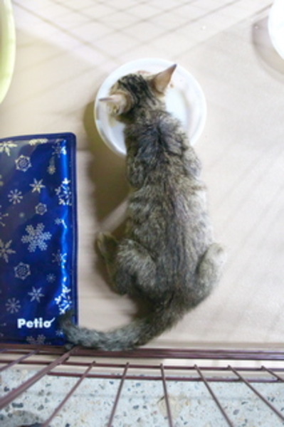 | 里親募集する理由 | 8/22朝に自宅の縁の下で1匹で鳴いていたため、保護しました。 先住猫がいて2匹目は難しいため、里親になってくれる人を探しています。 |