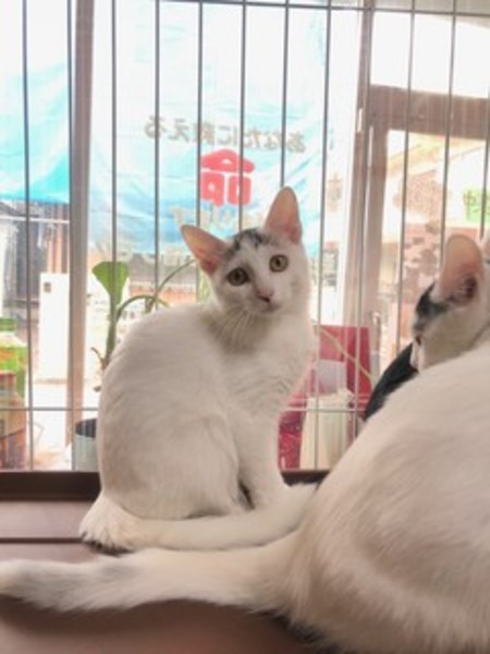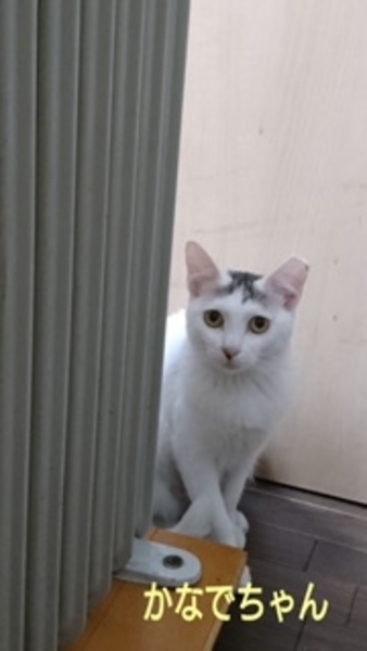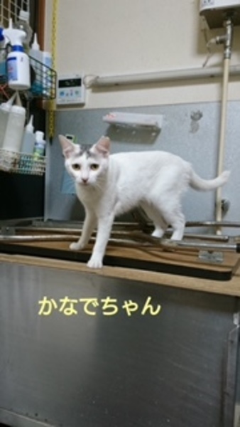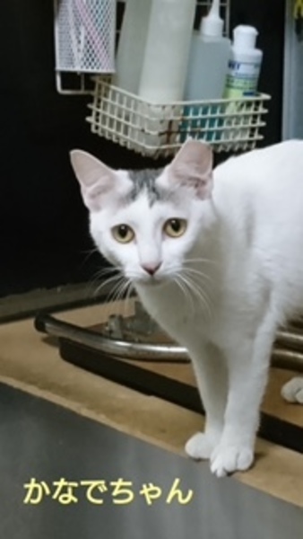 | 特徴(性格など) | 仮名「かなでちゃん」 ワクチン1回済み、ブロードライン済み、ウイルス検査白血病、エイズ共に陰性 白猫の女の子。 保護時は一番小さかったかなでちゃんですが、今では一番元気なおてんば娘です。 すずちゃんより少し薄いグレーの毛とちょっぴりタレ目な表情がチャームポイントです。 |