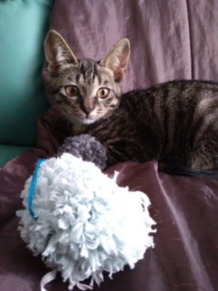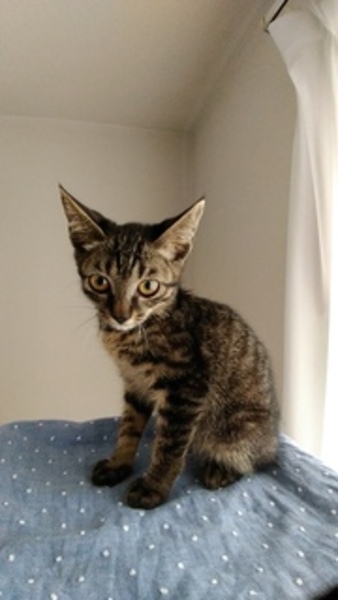| 特徴(性格など) | 名前:仮名でちびちゃんや毛の模様からタビーと呼んでいます。(ブラウンタビーからとっています。) 毛色:キジトラ。しっぽが長いですが先が丸まっていています。 状態:ノミダニ取り済。シャンプーも一度しています。回虫もいません。8/20に獣医さんに診てもらいましたが診てる途中逃げそうになり見 た目は痩せていないと言われてます。 ごはんはドライフードをよく食べます。トイレもしつけてあります。 性格:活発でよく遊びます。猫じゃらしと10cmくらいの小さ目なぬいぐるみ とよく遊びます。投げると取に行きます。 そして鼻チュウや私のおでこをなめてくれる優しい子です! 体をさわるとずっとゴロゴロ言っています! ノラだったので威嚇が心配でしたが2〜3日で慣れてくれて私の部屋で ぐて〜って寝ています。そして今も隣にいます。膝に乗っていますよ。 |