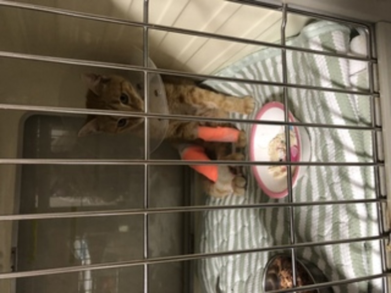 | 里親募集する理由 | 今年7月、右足にひどいケガをして、うちのガレージに倒れていました。 ほうっておけず、7月17日に保護して、入院させました。 現在、ケガの治療中です。 9月末に退院予定です。退院後にお届けになります。 |