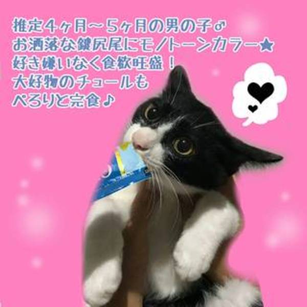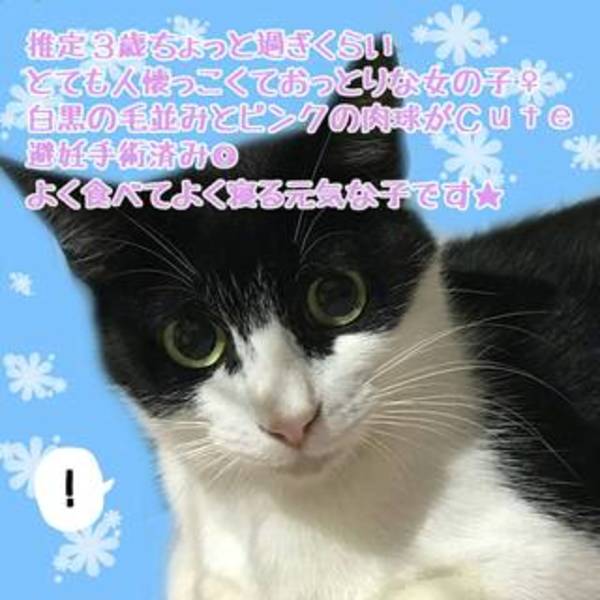 | 特徴(性格など) | 白黒3歳メス→大人しくて人慣れしています★ 三毛1歳メス→まだ遊びますが大人しい方です★人慣れしています★ 白黒、真っ黒兄弟5ヶ月くらいオス→遊び盛りです★人慣れは、△です。 茶白兄弟3ヶ月くらいオス→まだまだやんちゃです★人慣れは、これからどんどんしていくと思います★ |
