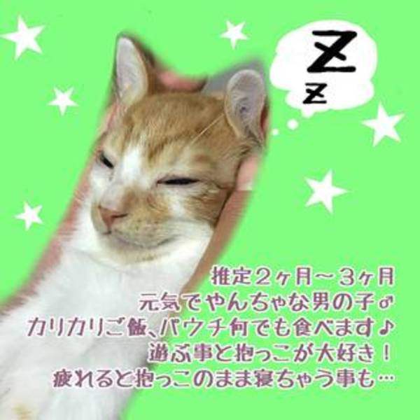 | 里親募集する理由 | 職場の近くで繁殖していたので、道路も近く保護しましたが、無責任ですが家にワンコや小動物などいっぱい居て飼えないので里親様を募集します。 | ||