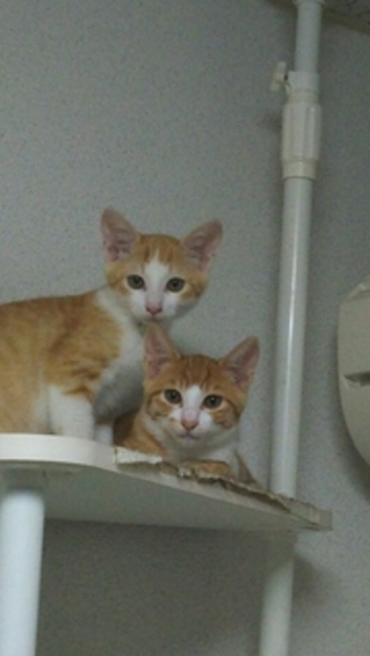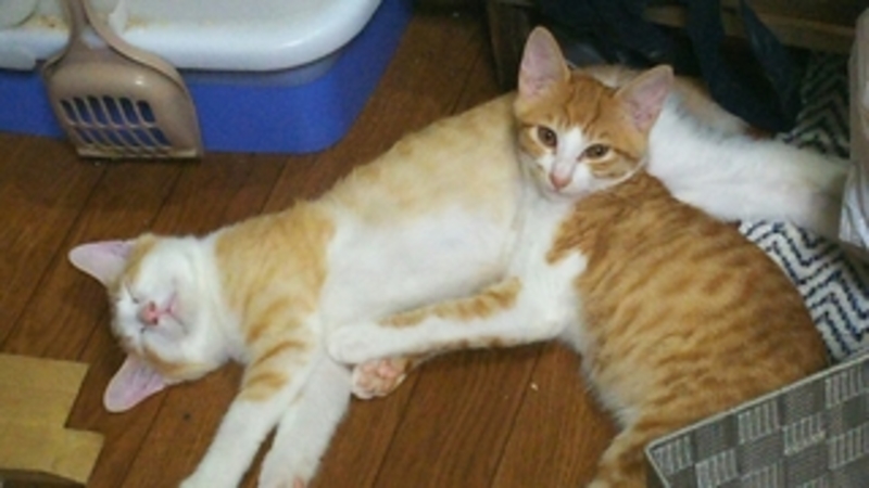 | 特徴(性格など) | 茶白のハチわれ兄弟 柑橘ブラザーズ 白地が多い子:かぼす君 食いしん坊のナデナデ大好き 茶が多い、白靴下、白手袋の子:はっさく君、マイペース 2匹ともFIV,白血病陰性 回虫、ノミダニ駆除済 ワクチン1回接種済 |
