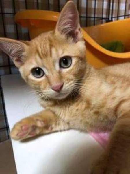 | 特徴(性格など) | 健康状態 *2018年9月3日時点 推定生後3〜4ヶ月 ワクチン1回接種済み エイズ・白血病陰性 レボリューション済み 食欲旺盛、元気です。 猫の特徴など 子猫はトラ柄のトラ吉くん、男の子。 外で暮らしていたので、少しだけ警戒心がありますが、まだ小さいので、これから人と接して行く事で、十分に懐いて行くと思います。 愛嬌のあるお顔したイケメンの茶トラくんです。 |