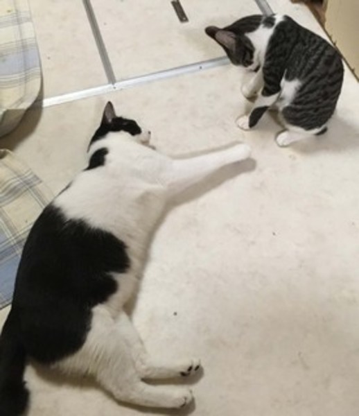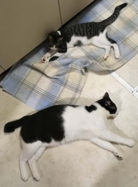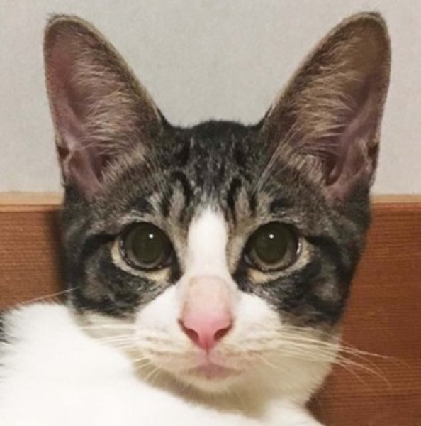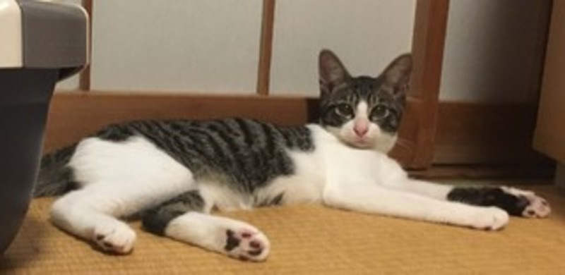 | 特徴(性格など) | 野良の子ですが人には慣れてます。 あまえんぼで触るとゴロゴロにゃんにゃん言ってきます。人間の手を吸うのが好きです。 大きな瞳で模様もくっきりしていて美猫です。 お腹の模様がチャームポイント。 4ヶ月というと体のバランス的には成猫に近くなってきますが、まだまだ子猫です。6枚目の写真がうちの成猫と一緒に撮った写真です |