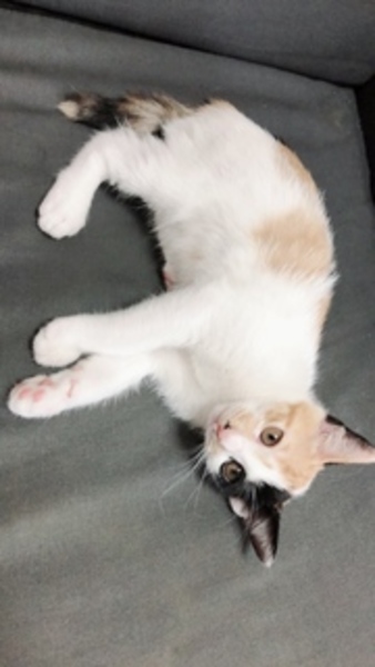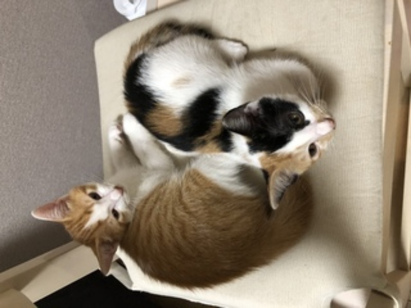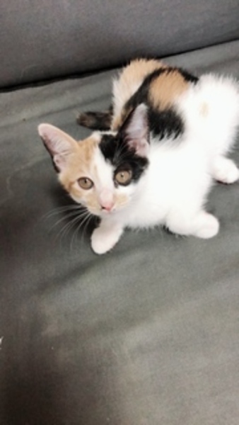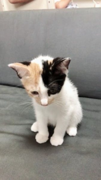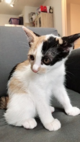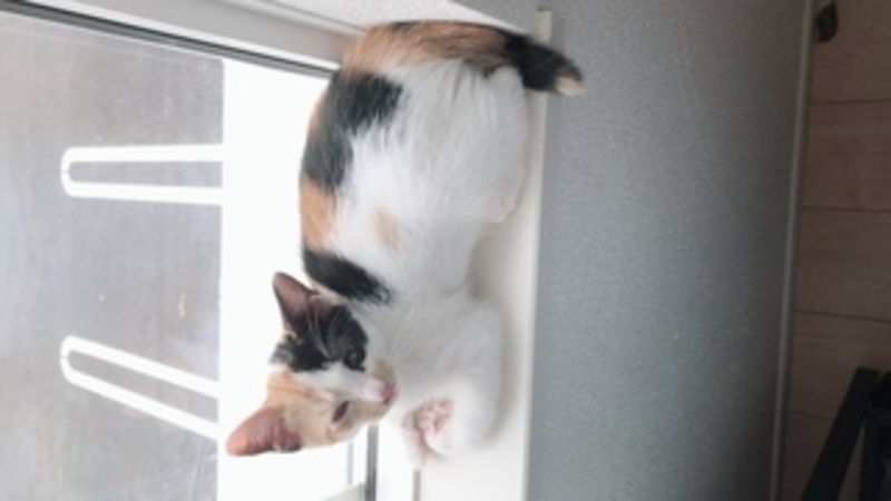 | 特徴(性格など) | 綺麗に柄の入った三毛猫で尻尾は短い鍵尻尾です。人懐っこく甘えん坊でお布団で一緒に寝ることも出来ます。子供にも慣れているので子供が抱っこしても嫌がらず大人しくしています。 | ||