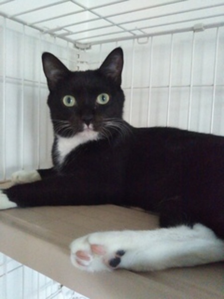| 特徴(性格など) | もずく君 タキシード柄のちょっとシャイな男の子です。明るくてやんちゃです。猫とも仲良く出来ます。 | ||
